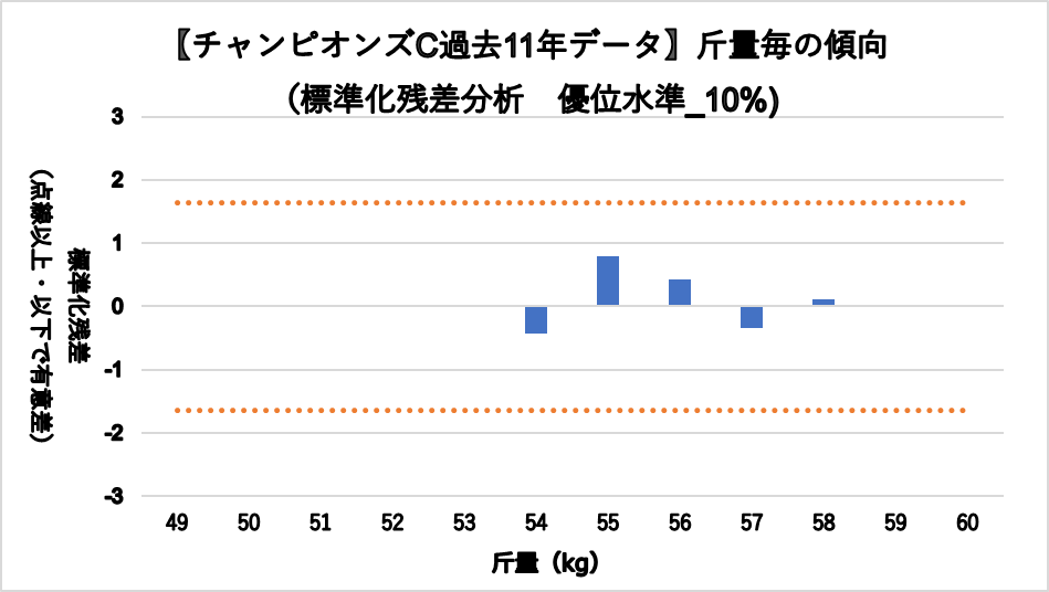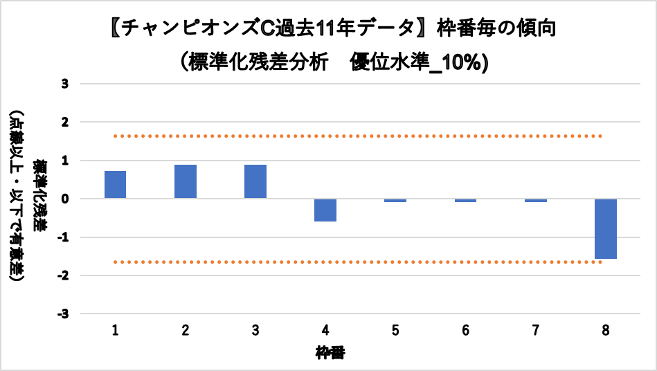 3着内率グラフと統計処理(標準残差分析)グラフの2つを掲載しています。