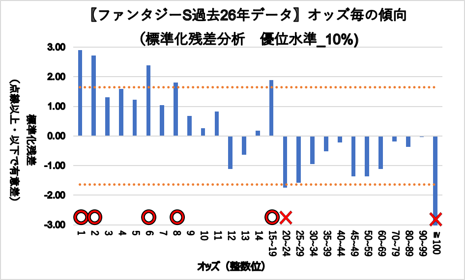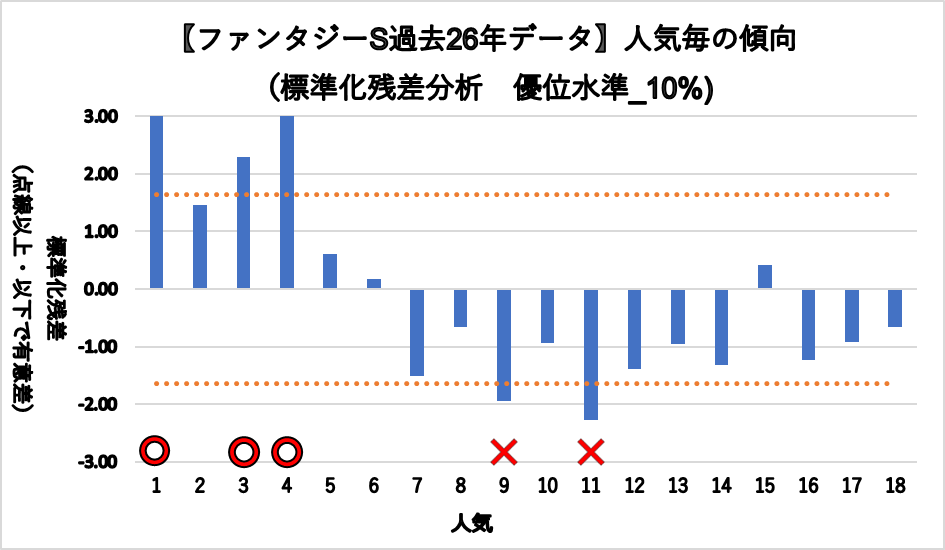 ファンタジーステークスの過去26レース分のデータを統計的に解析し、得られた傾向から有力馬と消し馬を選定しました。
