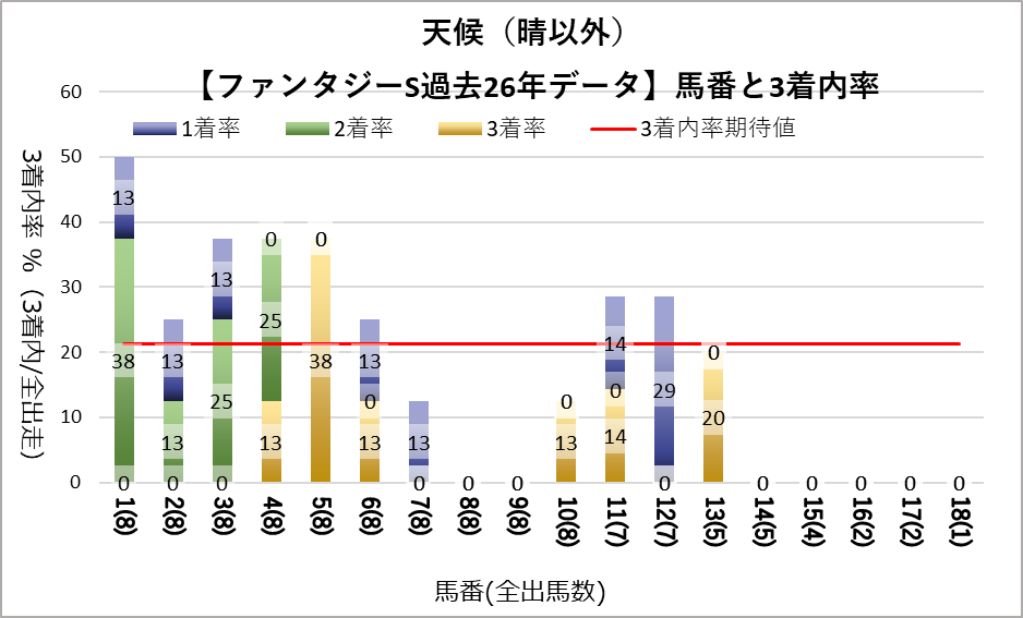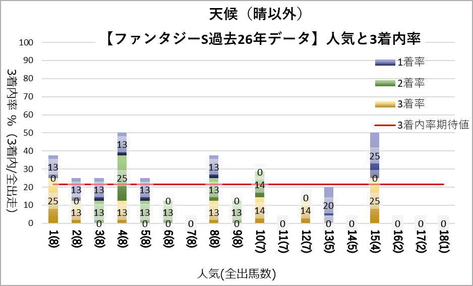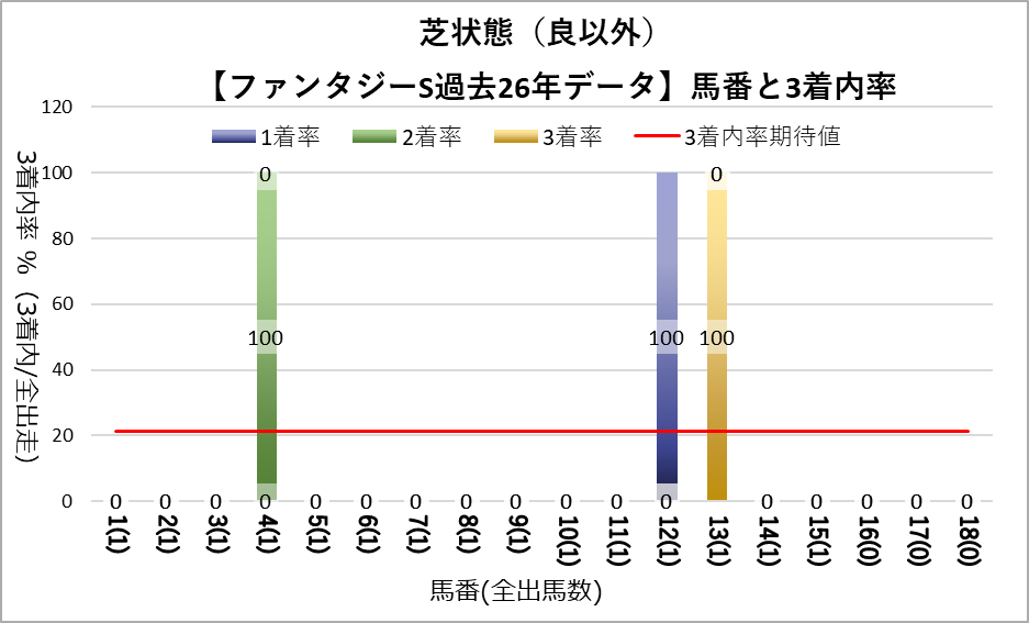 有料級!過去レース統計解析結果まとめファンタジーステークスの過去26レース分のデータを統計的に解析し、得られた傾向から有力馬と消し馬を選定しました。評価項目は下記の9個+α。*印の項目は追加で天候(晴と晴以外)と馬場状態(良と良以外)で条件...