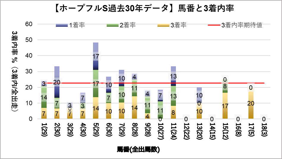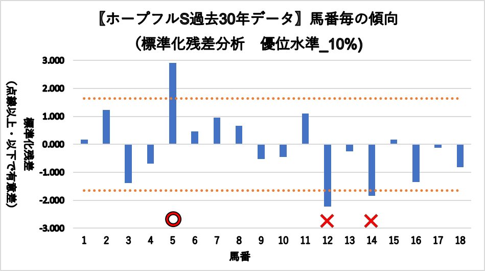 ホープフルステークスの過去30レース分のデータを統計的に解析し、得られた傾向から有力馬と消し馬を選定しました。