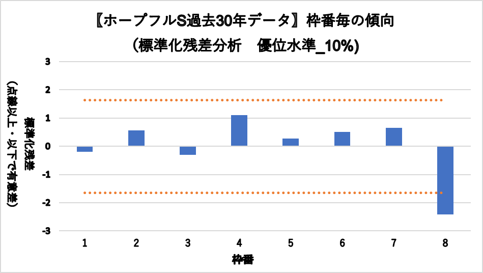 3着内率グラフと統計処理(標準残差分析)グラフの2つを掲載しています。