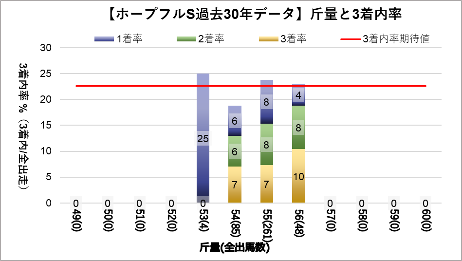 過去32レース分のデータを下記の評価項目と3着内率の関連についてグラフ化しました。