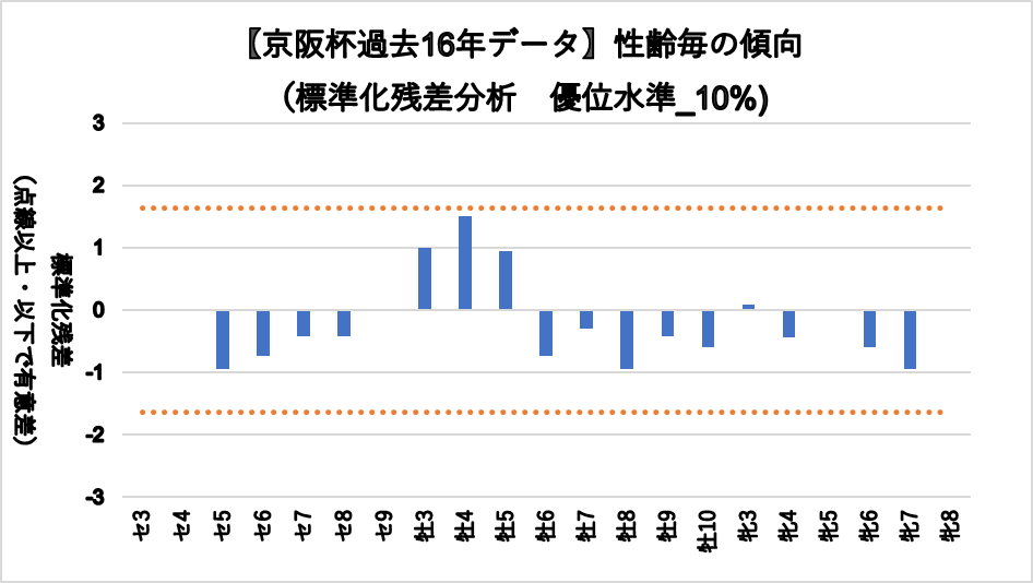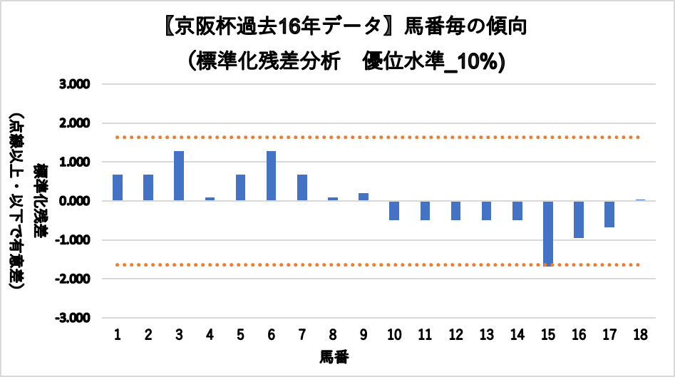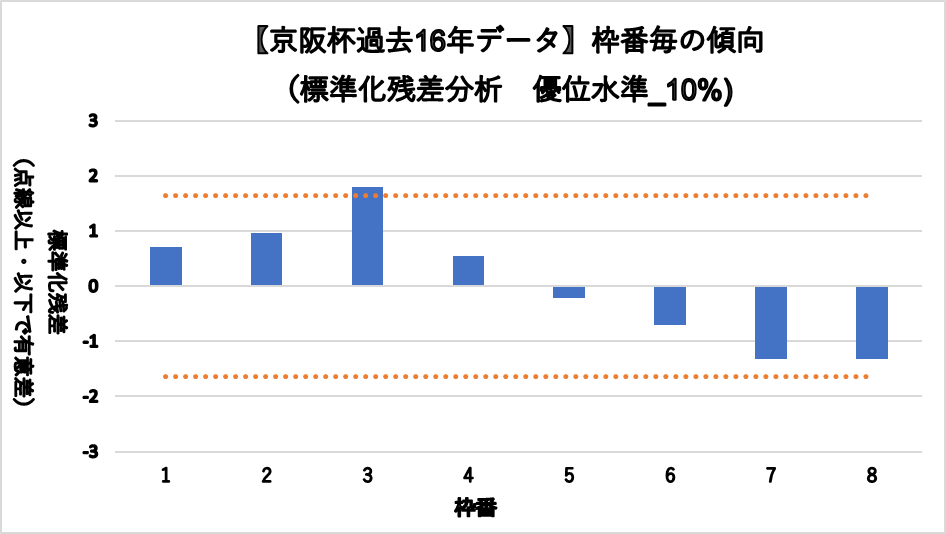 3着内率グラフと統計処理(標準残差分析)グラフの2つを掲載しています。