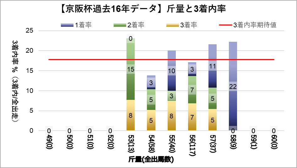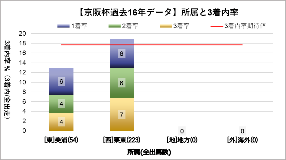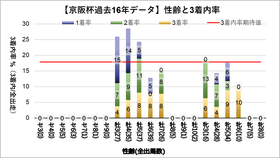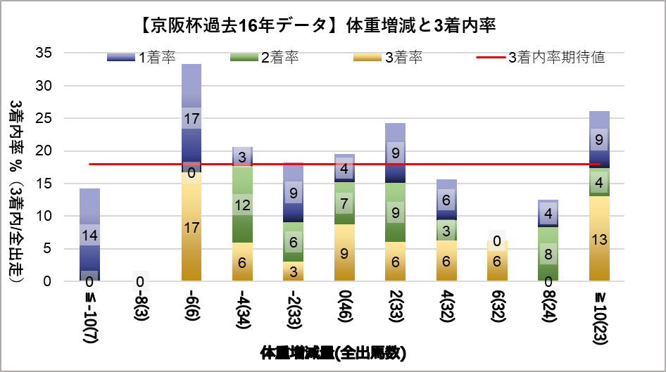 芝1200mに変更された2006年以降、京都で開催された16レース分のデータを下記の評価項目と3着内率の関連についてグラフ化しました。