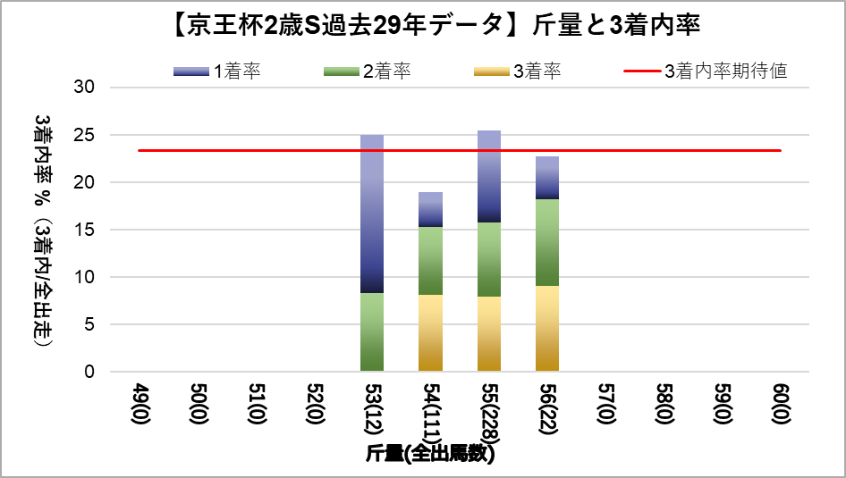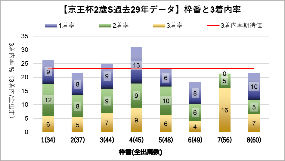 過去29レース分のデータを下記の評価項目と3着内率の関連についてグラフ化しました。