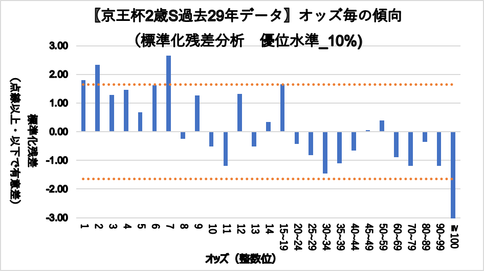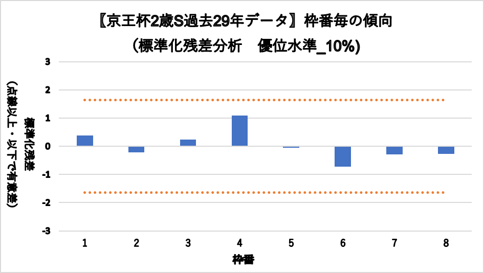 3着内率グラフと統計処理(標準残差分析)グラフの2つを掲載しています。
