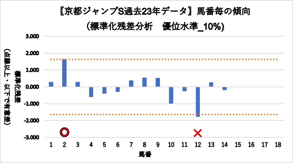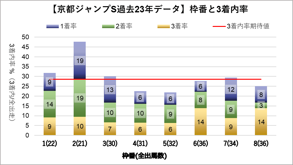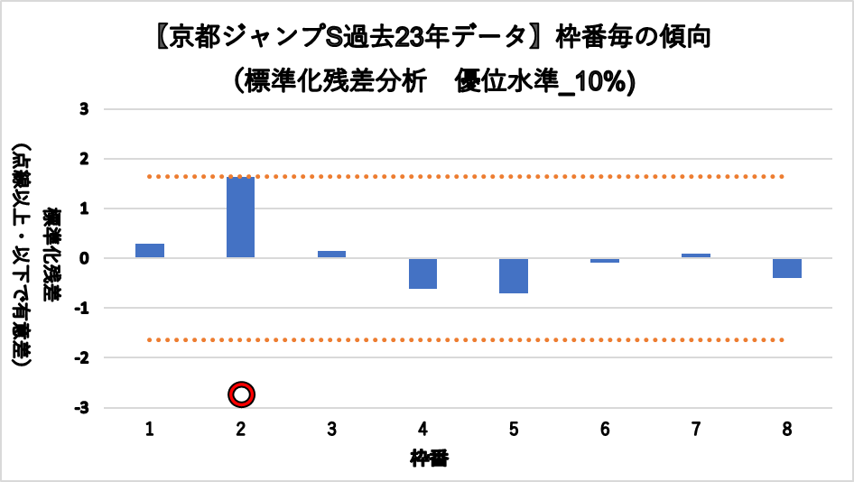 2枠(複勝率47.6%)に有意な好走傾向が見られた。