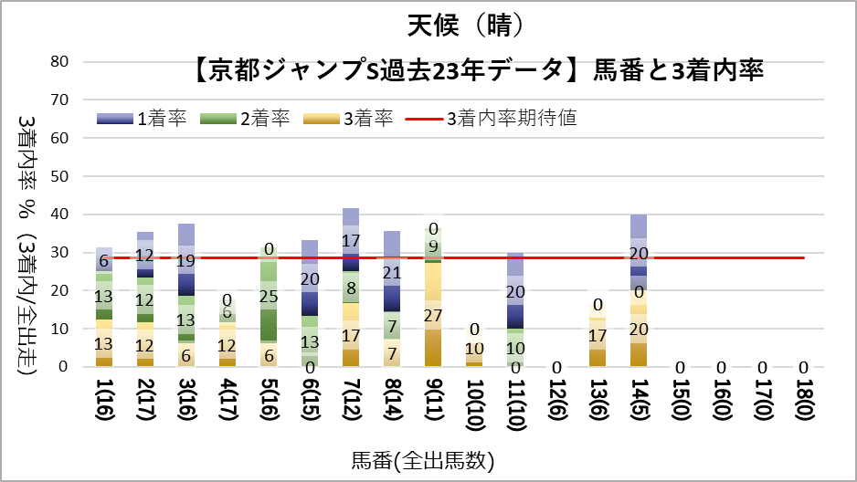 また12番(複勝率0%)は馬券に絡みづらい傾向があった。