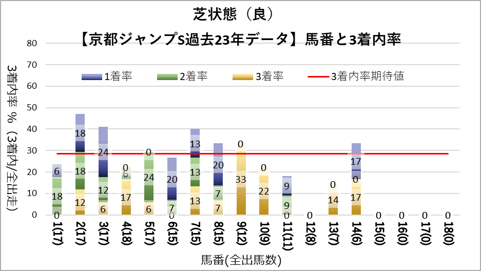 2番(複勝率47.6%)のみ好走の傾向が見られた。