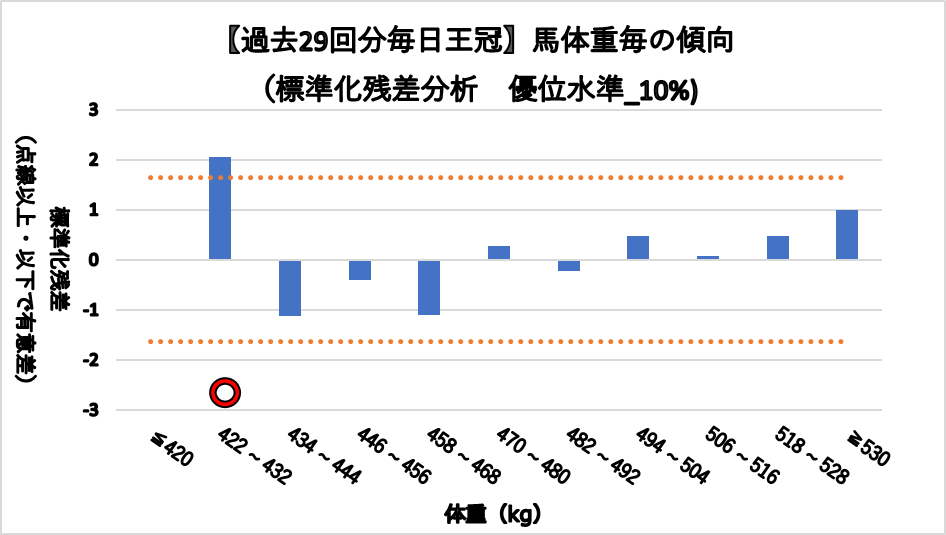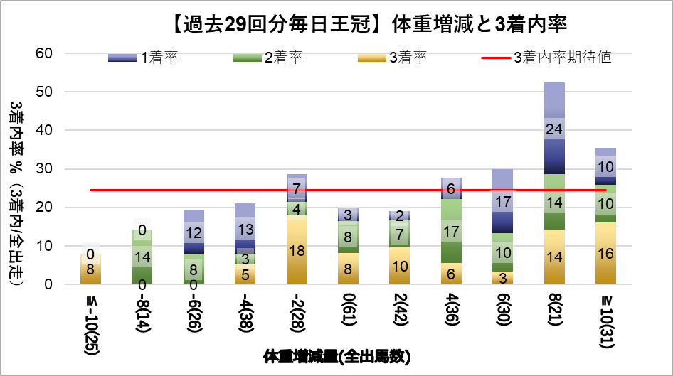 10kg以上減量した馬は3着内に入りにくい傾向。
