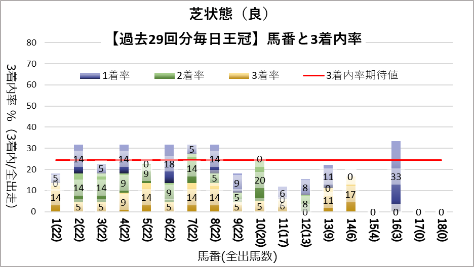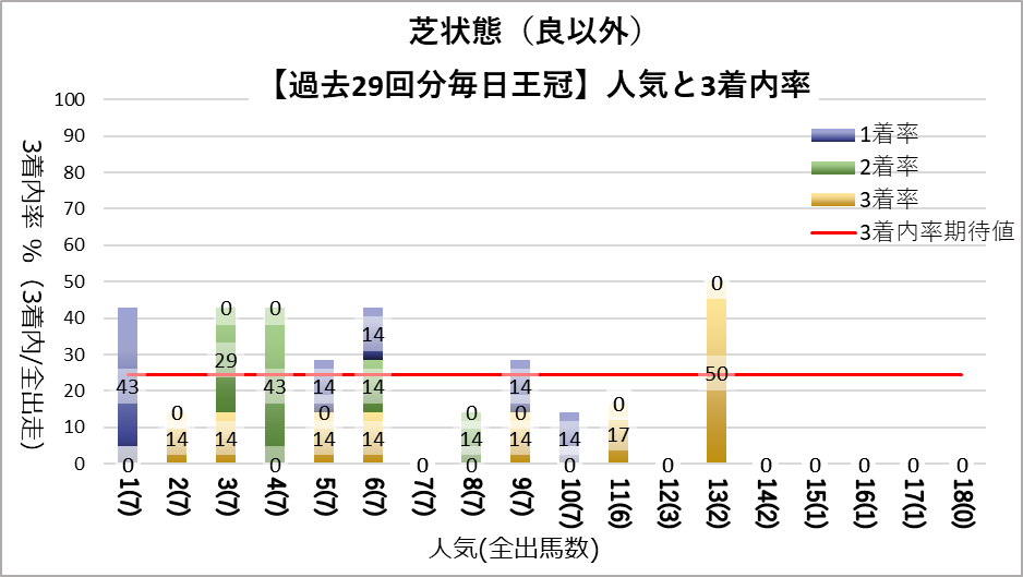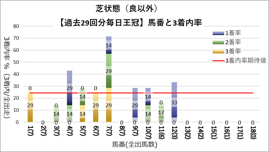 特に芝状態が良以外のときの7番圧倒的な複勝率