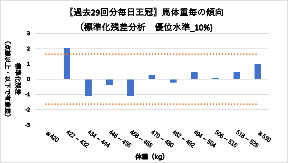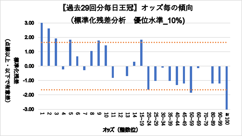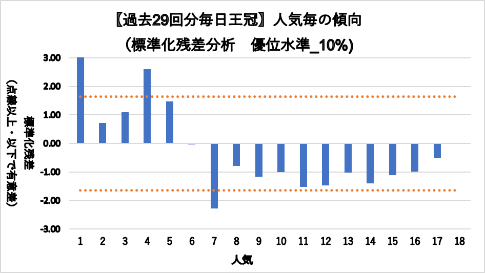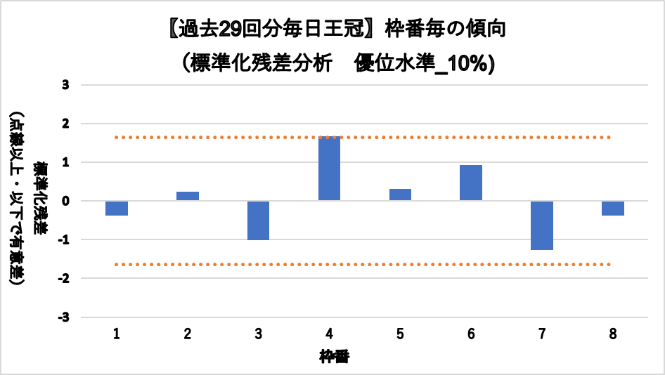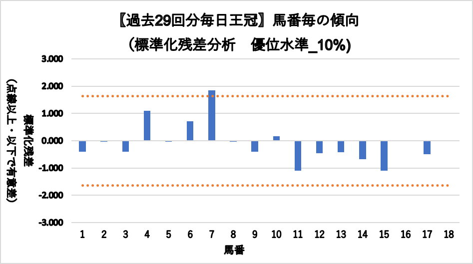 3着内率グラフと統計処理(標準残差分析)グラフの2つを掲載しています。