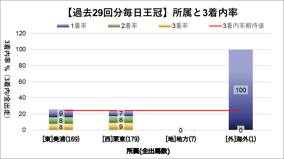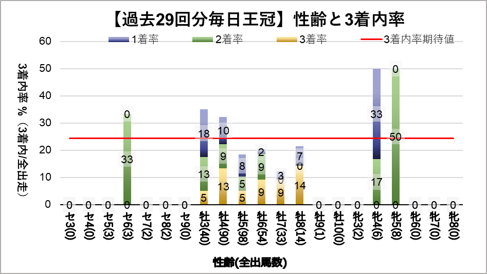 過去29レース分のデータを下記の評価項目と3着内率の関連についてグラフ化しました。
