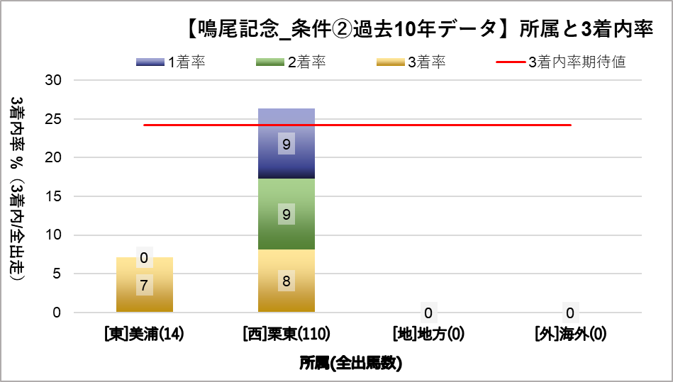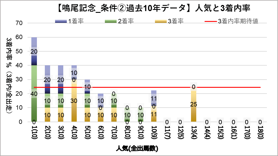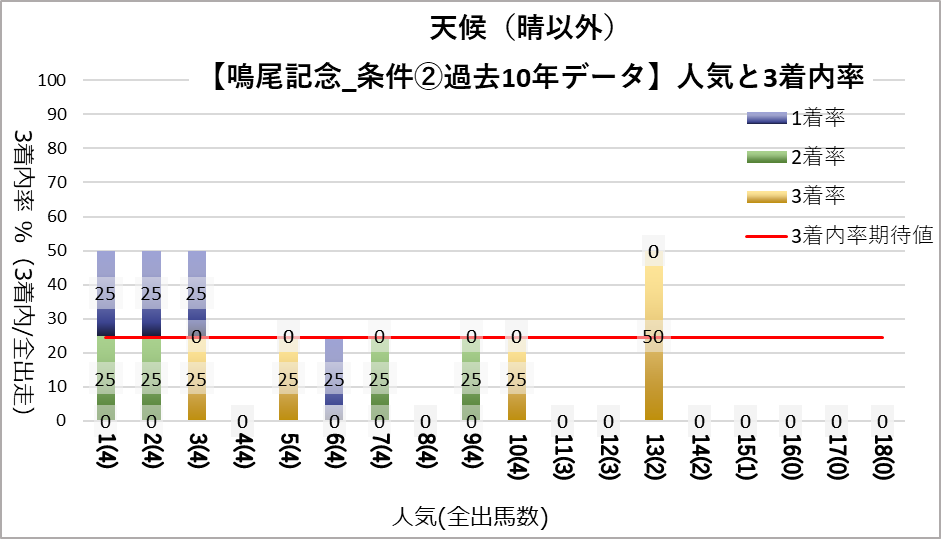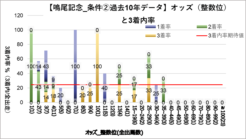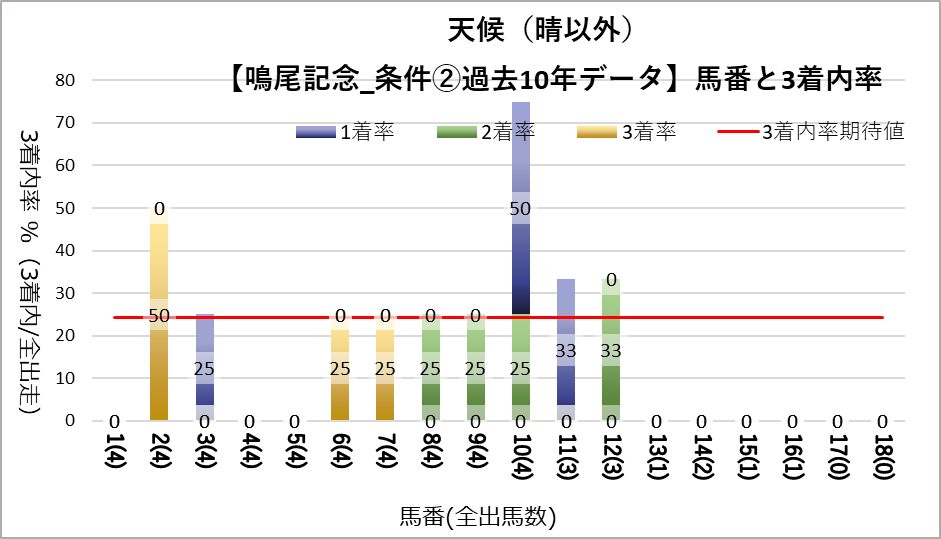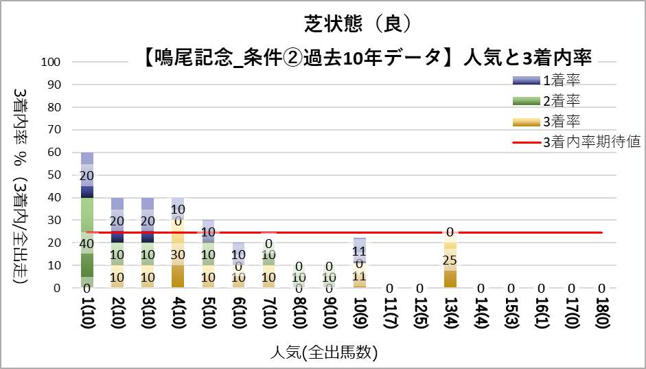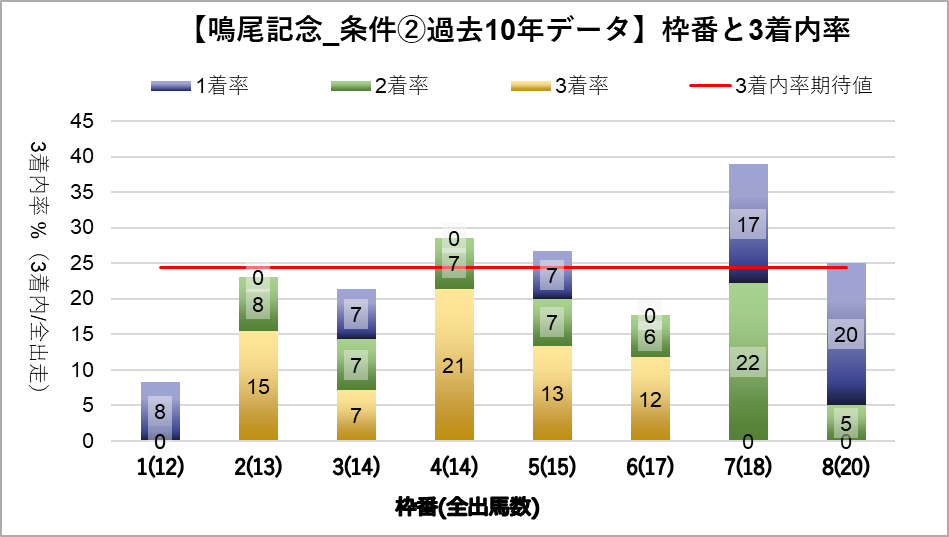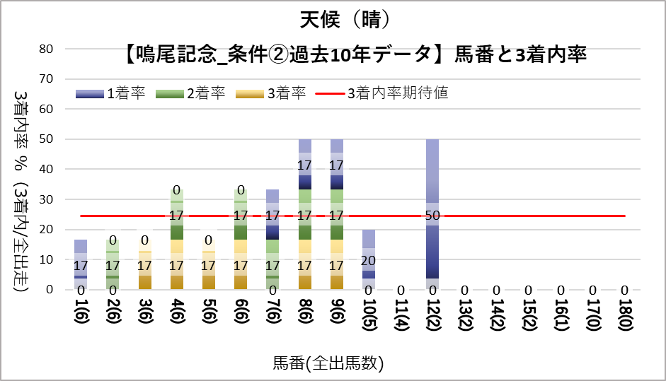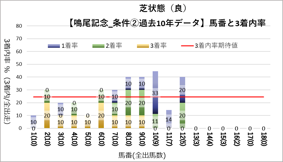 !注意!今年実施される鳴尾記念のレース条件(阪神、12月開催、芝内回り1800m)は今年が初めてです。そのため、下記の複数条件のレースデータをまとめて解析しています。参考値としてご活用ください。