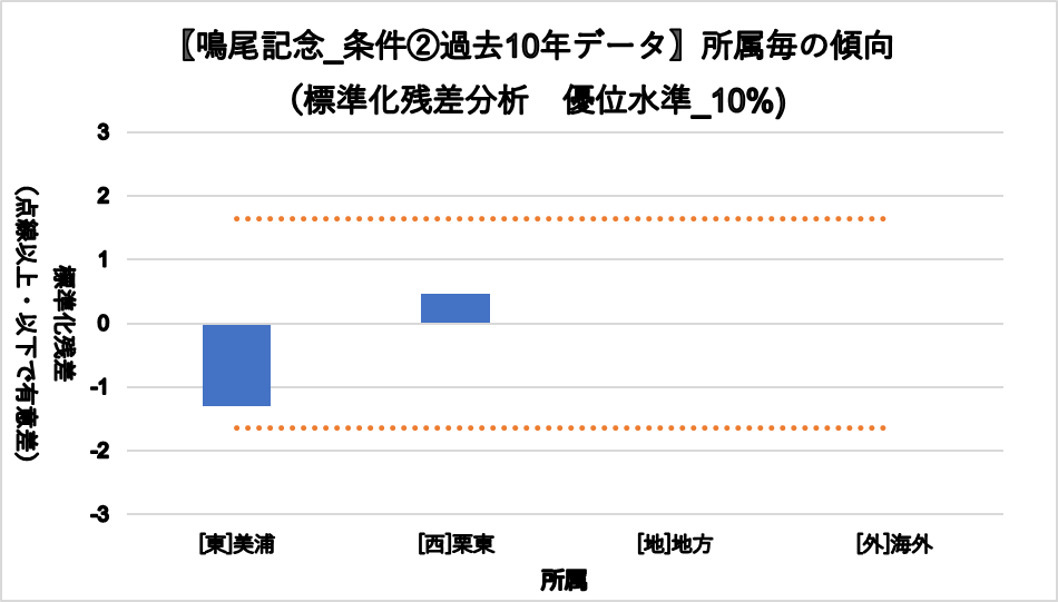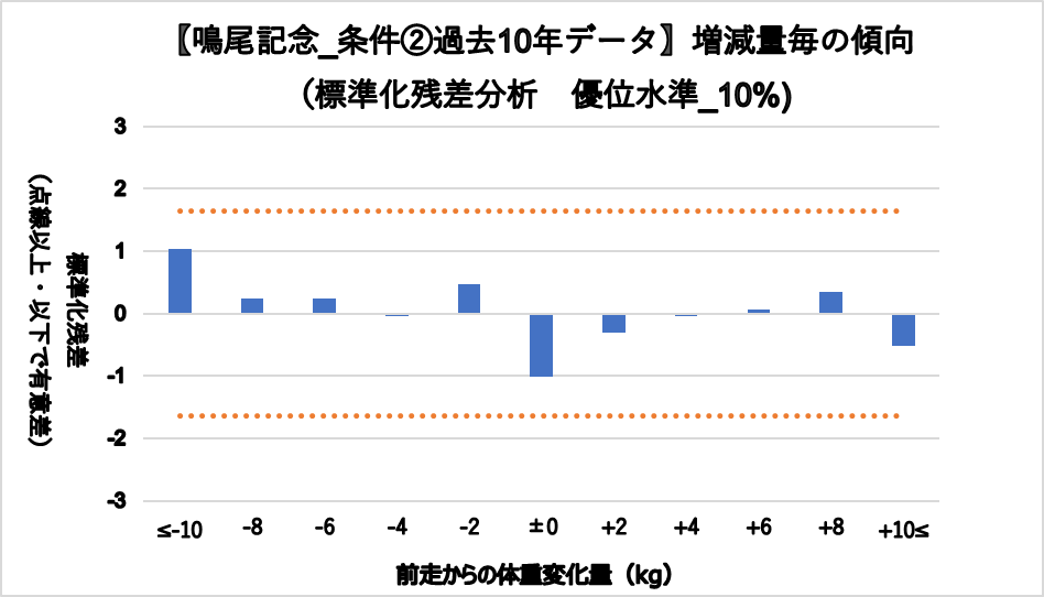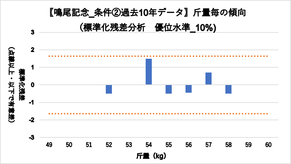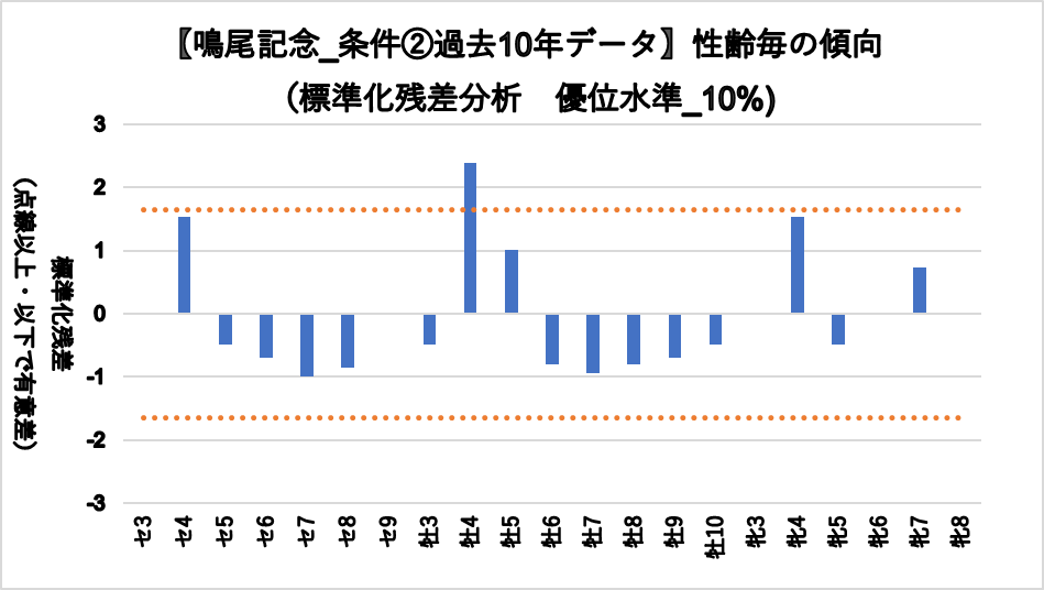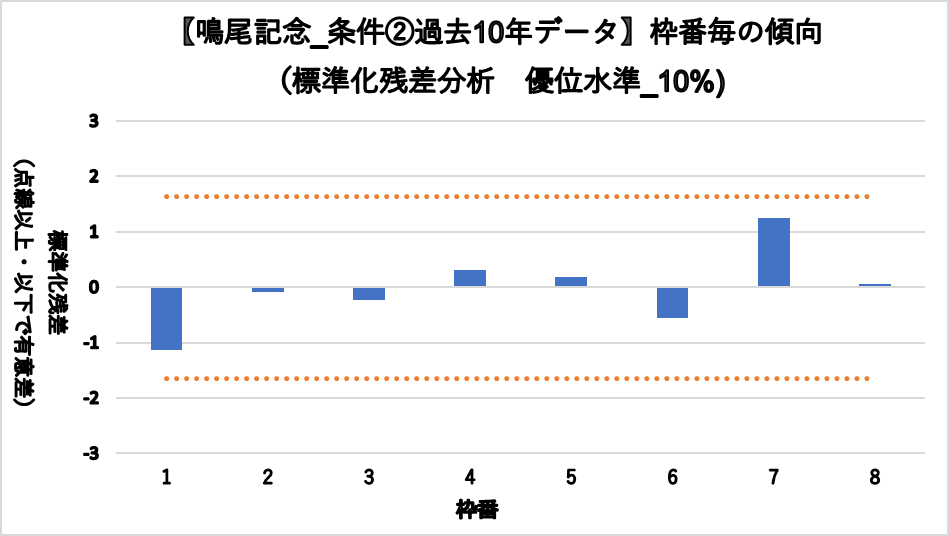 3着内率グラフと統計処理(標準残差分析)グラフの2つを掲載しています。
