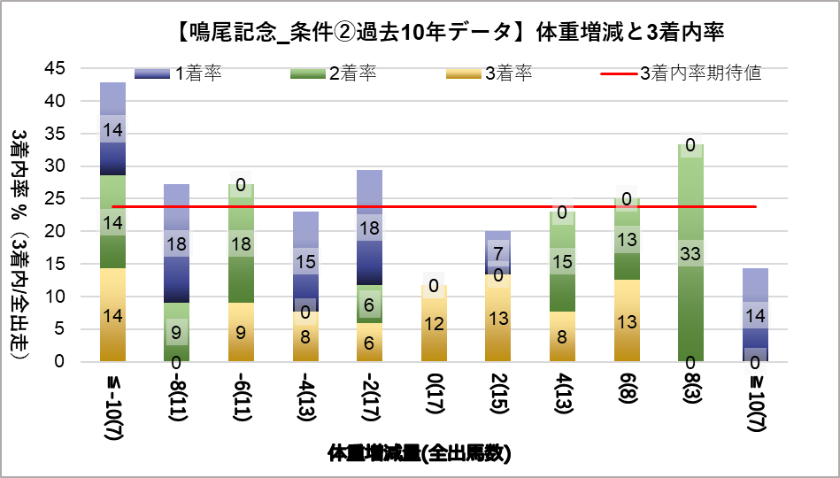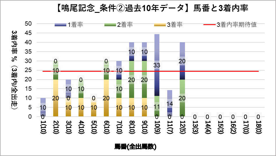 過去10レース分のデータを下記の評価項目と3着内率の関連についてグラフ化しました。