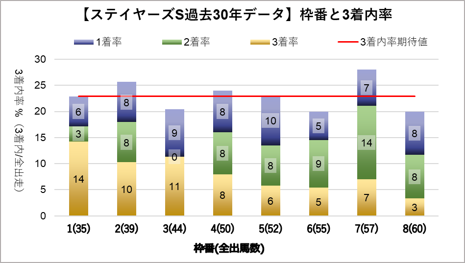過去30レース分のデータを下記の評価項目と3着内率の関連についてグラフ化しました。