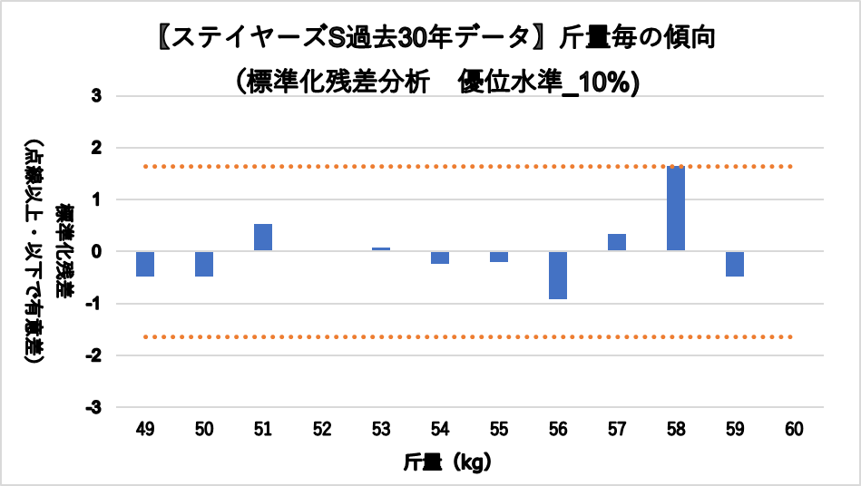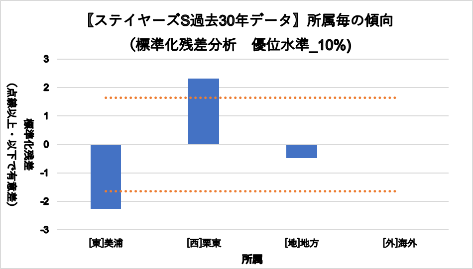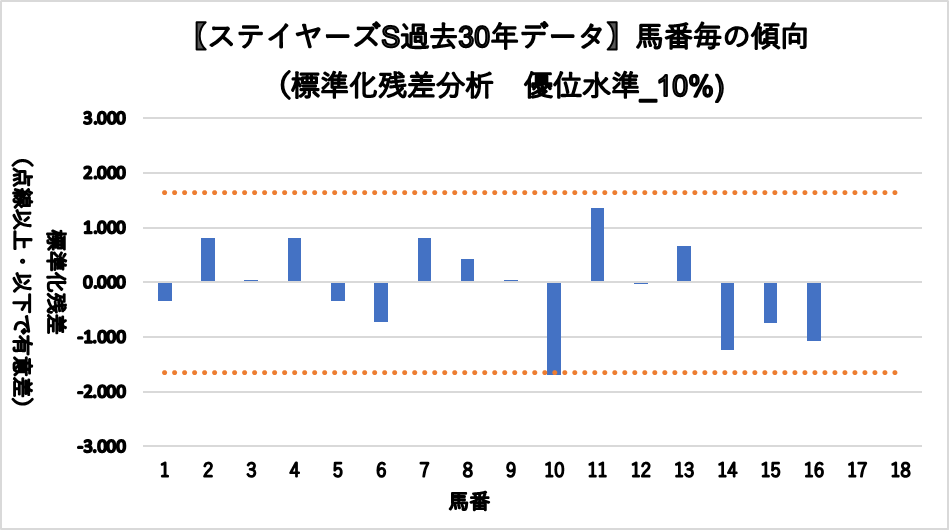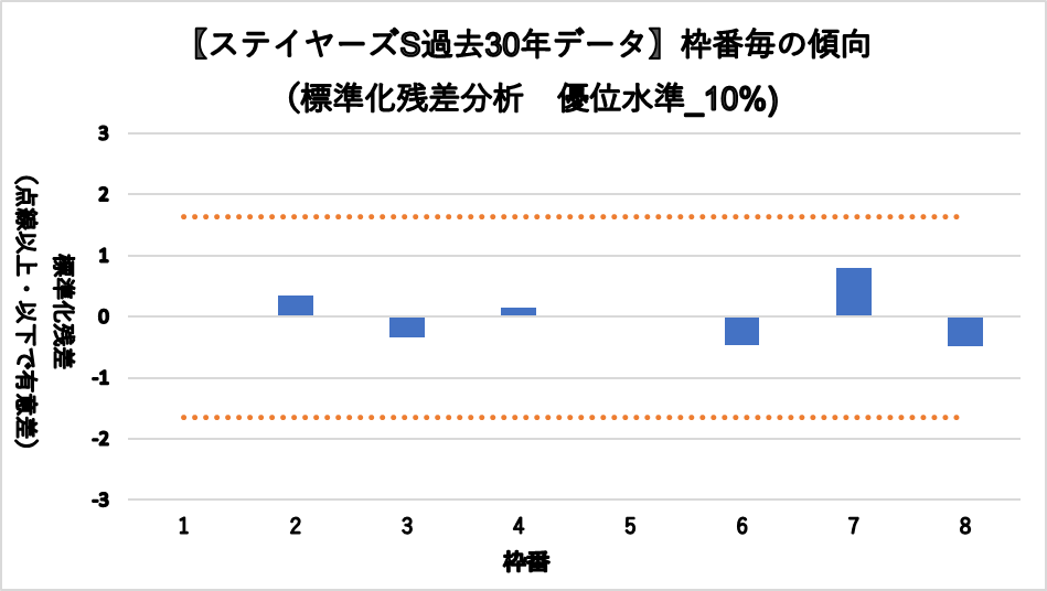 3着内率グラフと統計処理(標準残差分析)グラフの2つを掲載しています。