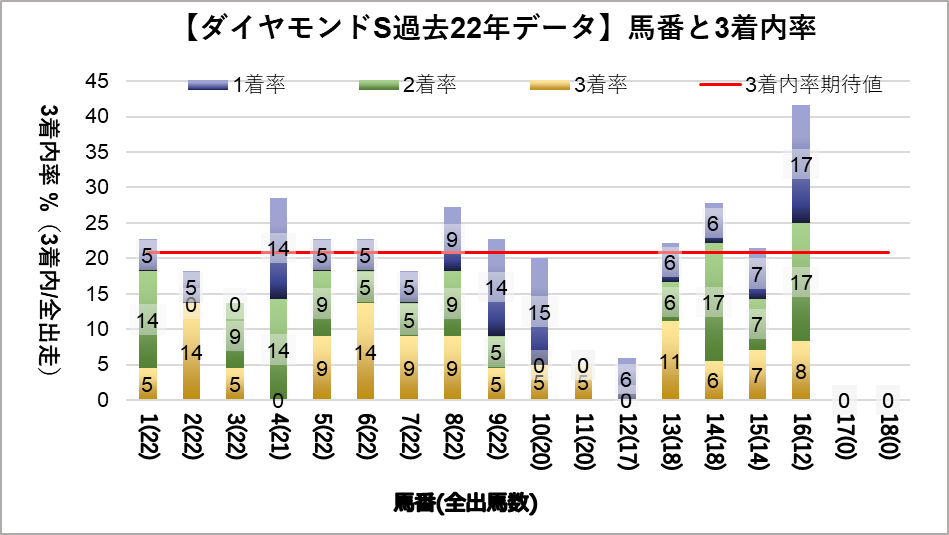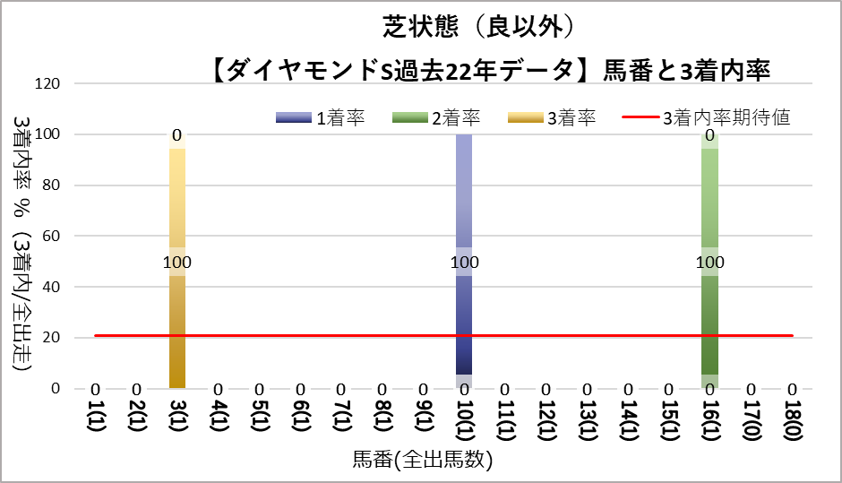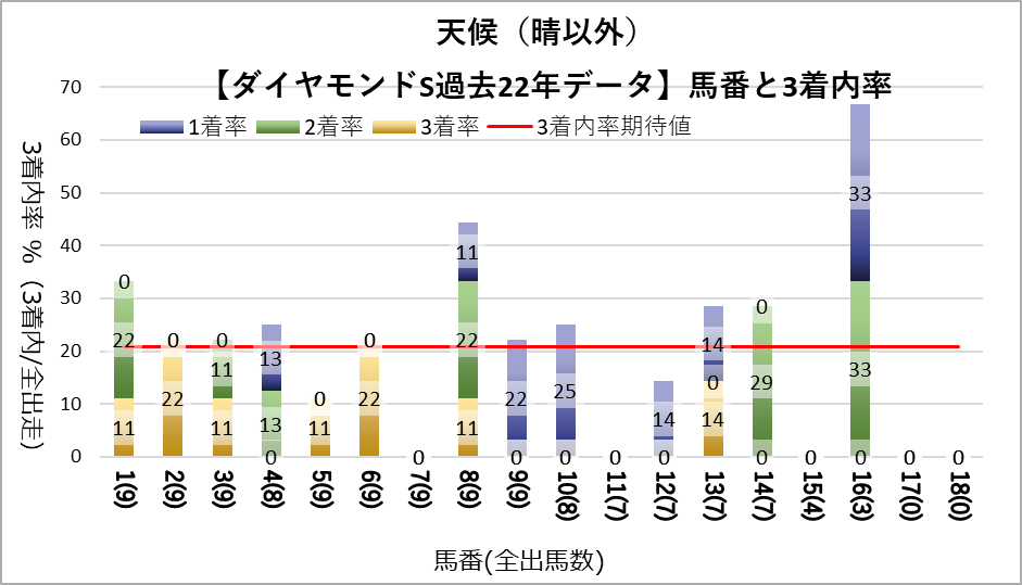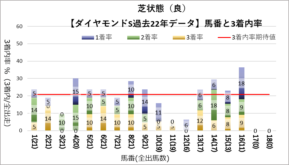 11, 12番が凡走する傾向と16番が好走する傾向が見られたが、統計的な有意差は認められなかった。