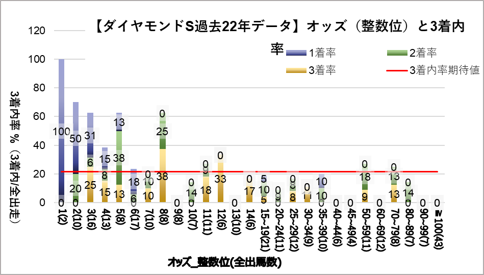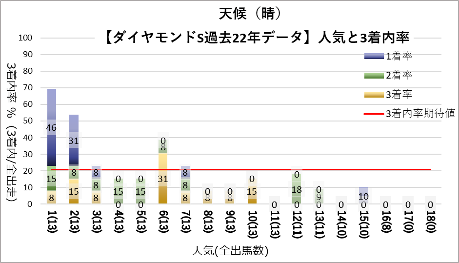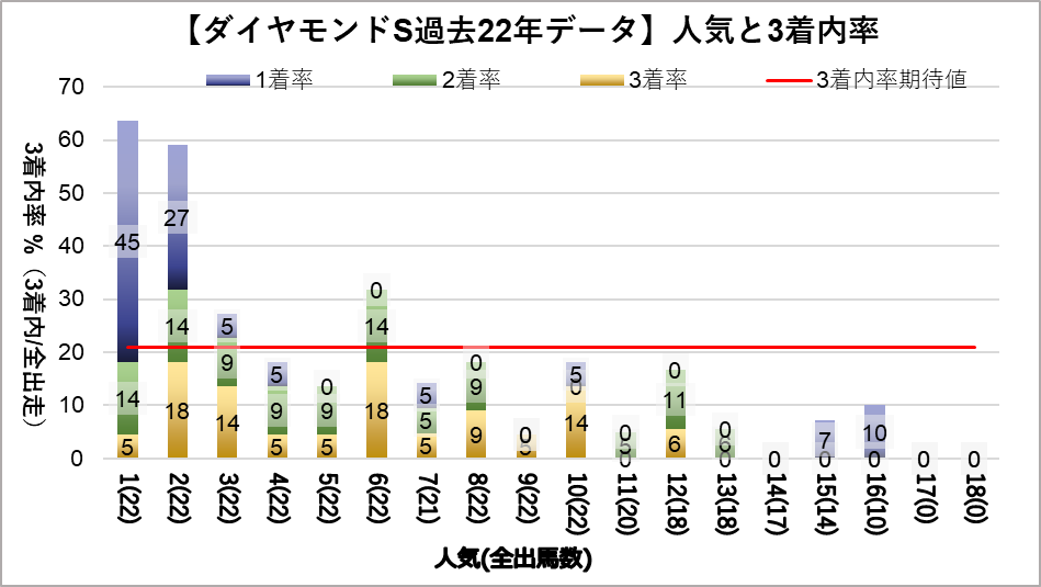 - 1人気(複勝率63.6%)、2人気(複勝率59.1%)