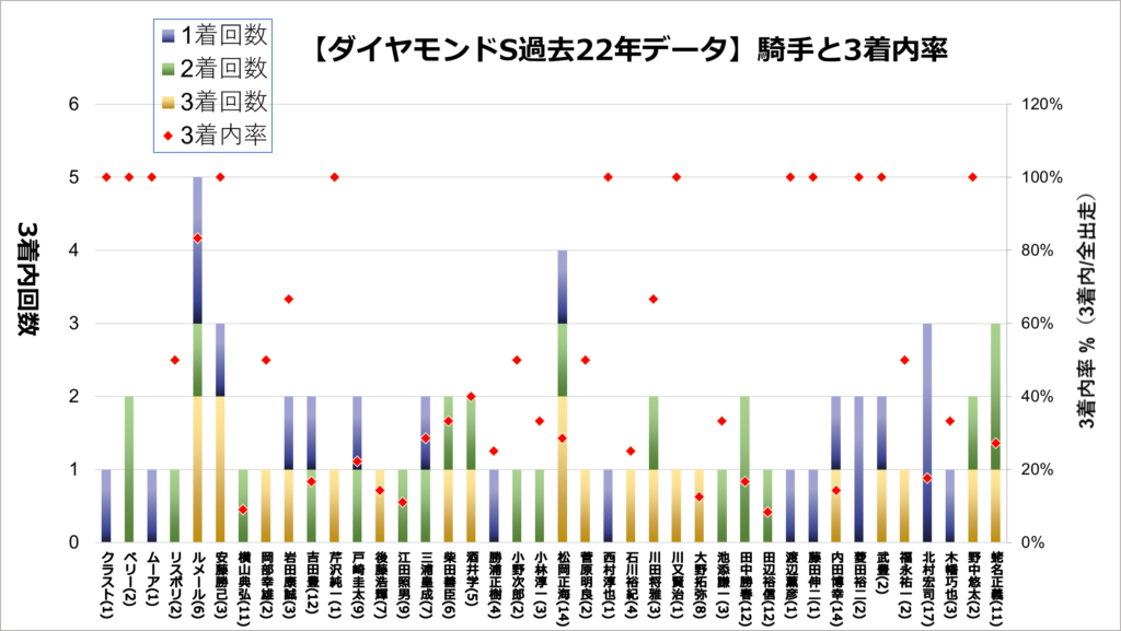 ※3着内に一度も入ったことがない騎手は記載なし。