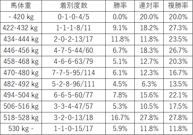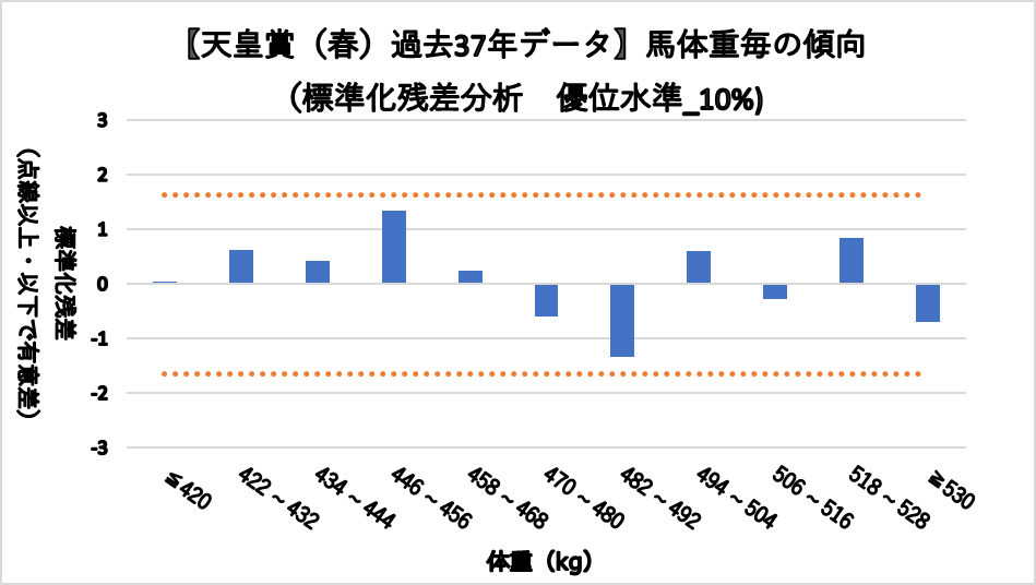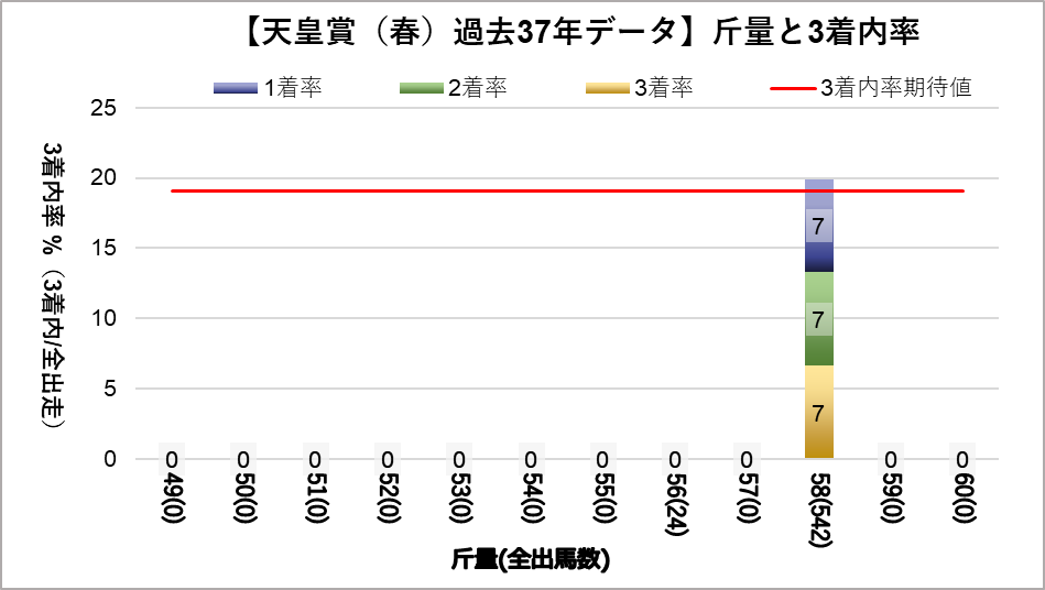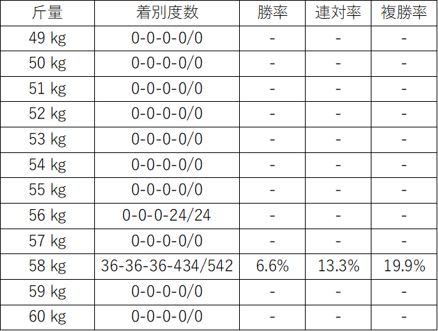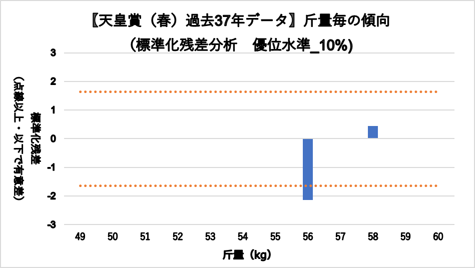 一方、斤量56 kgは統計的に見ても有意に凡走傾向である。