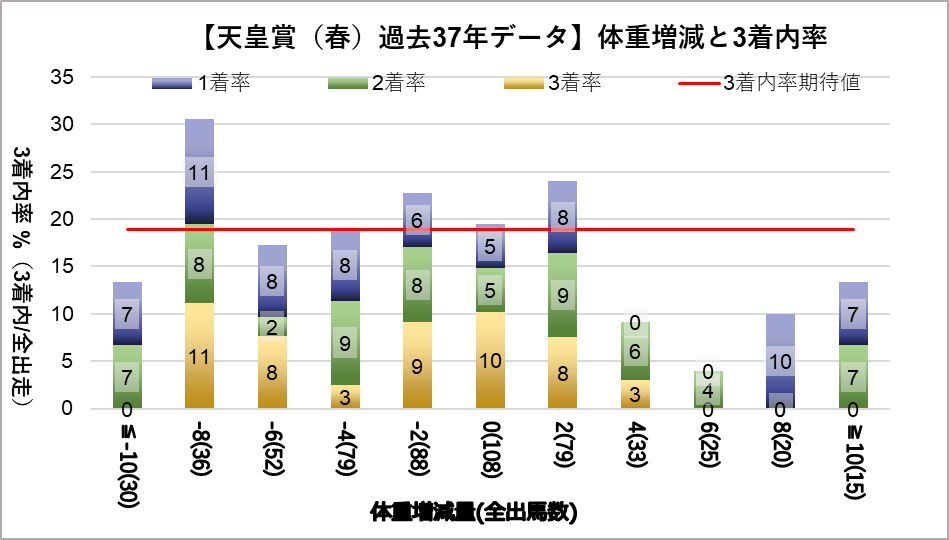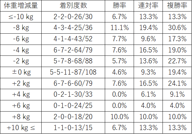 増減量+6kgについて有意に凡走する傾向が見られた。