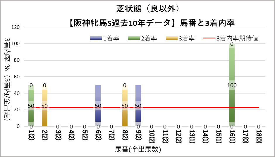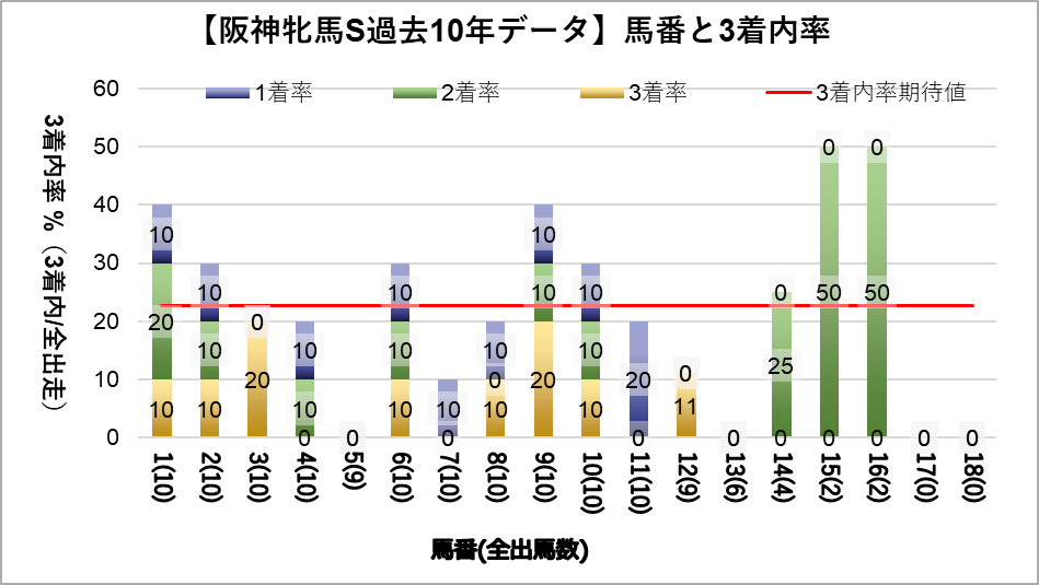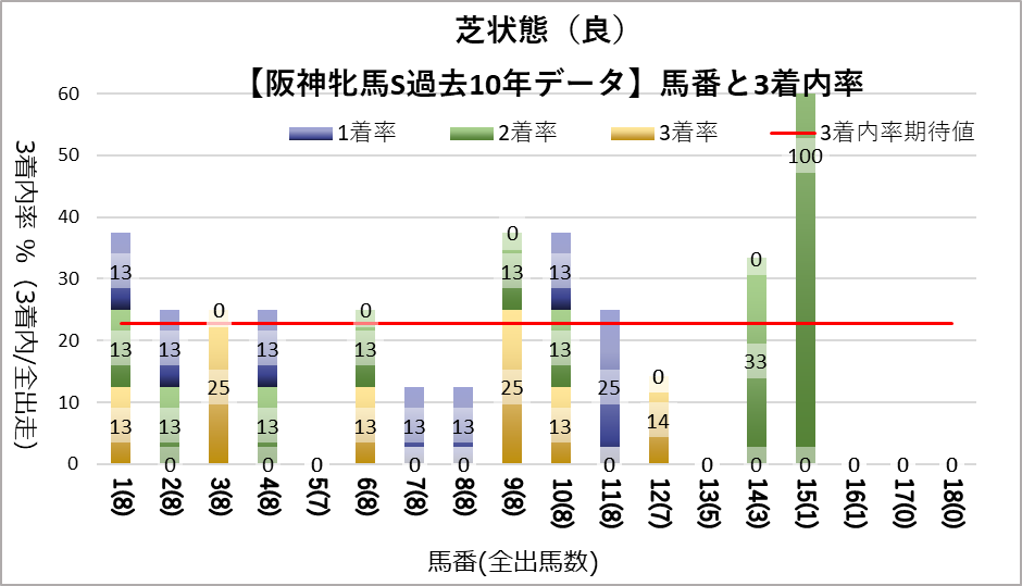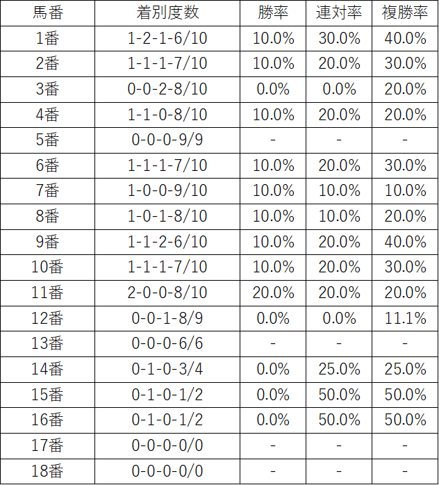 その他、5番,13番は過去一度も馬券に絡んだことがないことに注意。