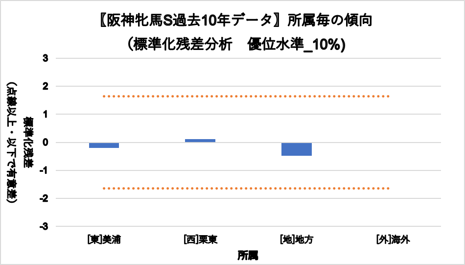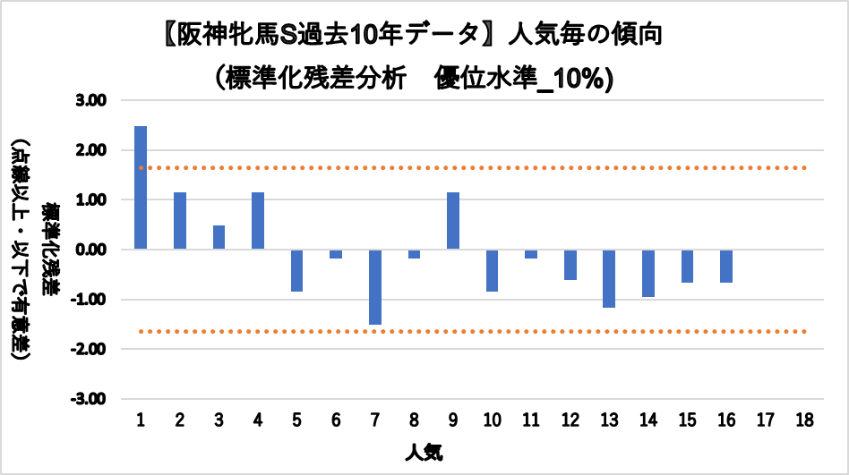 統計的に有意差があった項目について、3着内率グラフと統計処理(標準残差分析)グラフの2つを掲載しています。