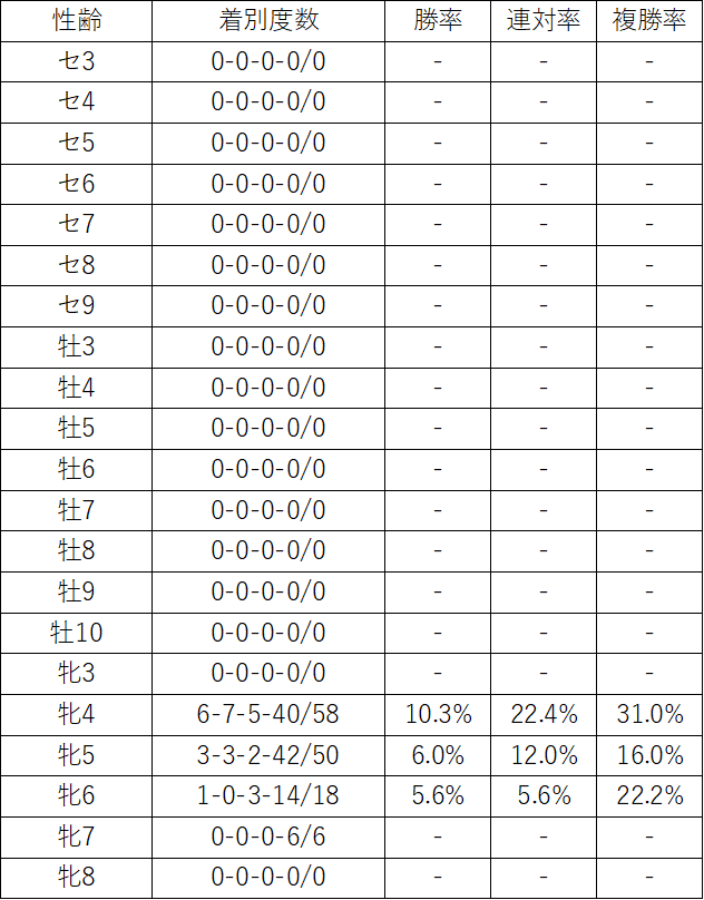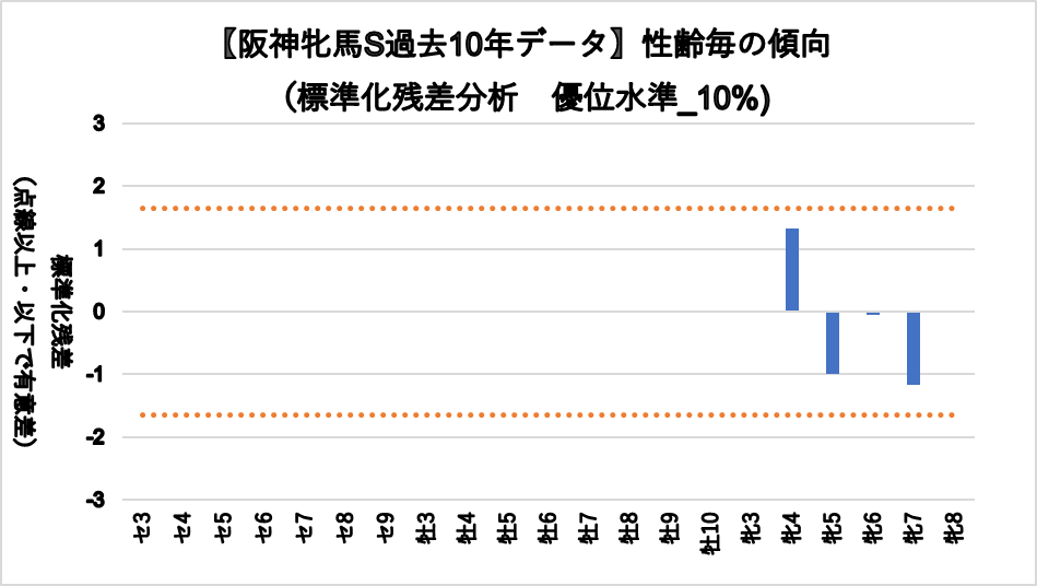 4歳馬が好走する傾向がみられるが、統計的な有意差は認められなかった。