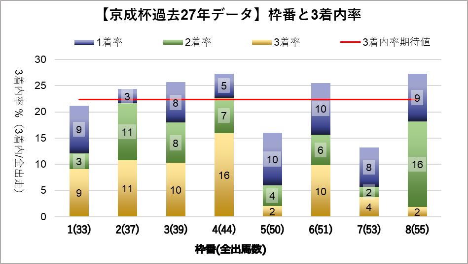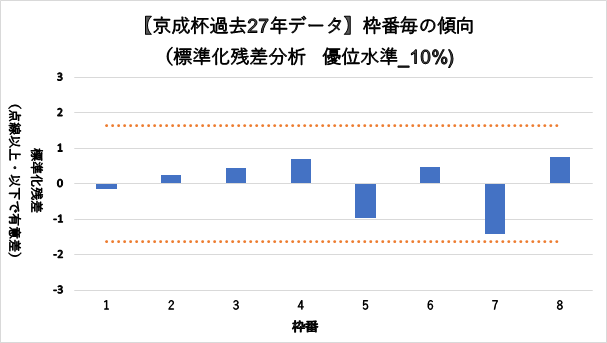 7枠に凡走傾向が見られたが、統計的な有意差は認められなかった。