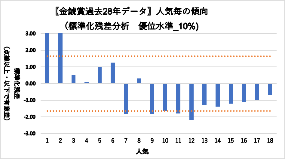 一方、7, 9, 11, 12人気においては有意に凡走する傾向が見られた。
