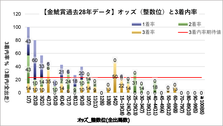 右軸:3着内率(赤い点を参照)