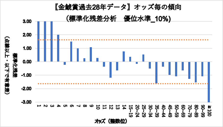 一方、100倍以上は統計的に見ても有意に凡走傾向である。