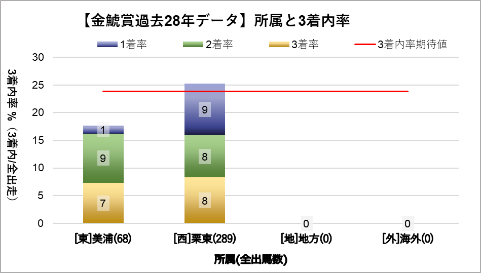 美穂所属が比較的馬券に絡みにくい傾向が見られるが、統計的な有意差は認められなかった。