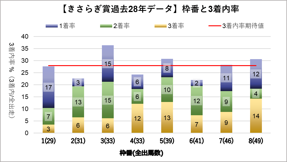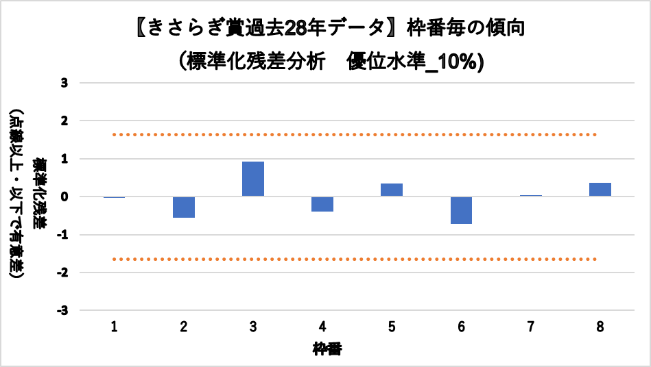 3番が好走する傾向が見られたが、統計的な有意差は認められなかった。