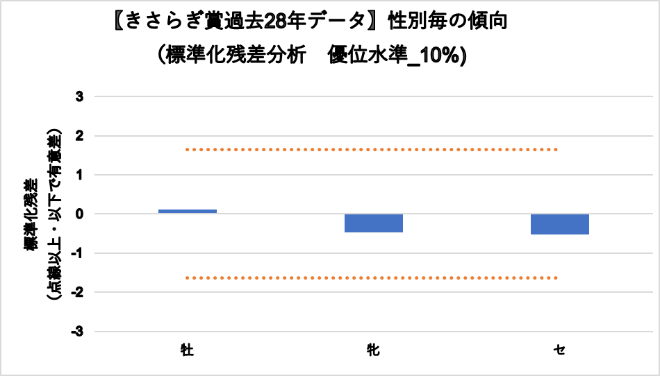 牡馬が好走する傾向がわずかに見られたが、統計的な有意差は認められなかった。