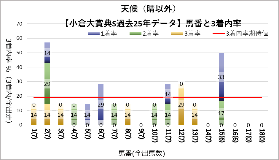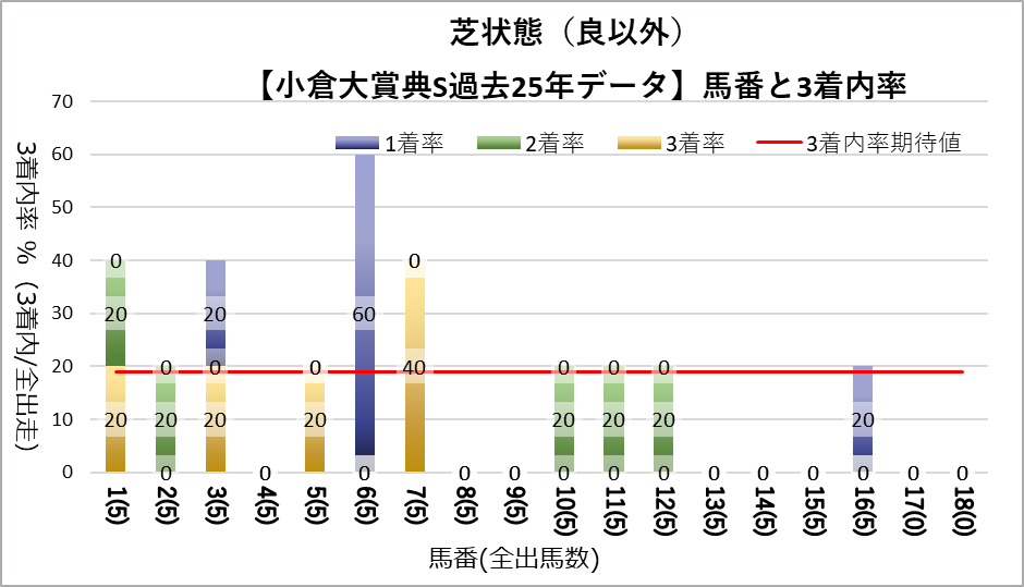 9番は天候や芝状態にかかわらず常に凡走する傾向がみられた。