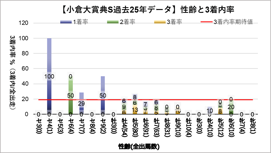 - セン馬4歳(複勝率100%)※出走数注意