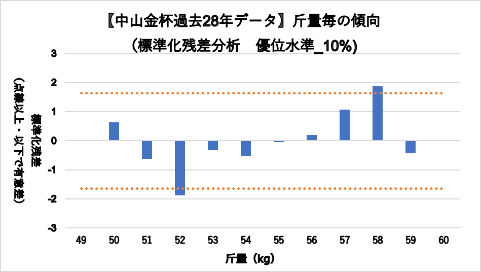 一方、斤量52kgは統計的に見ても有意に凡走傾向である。