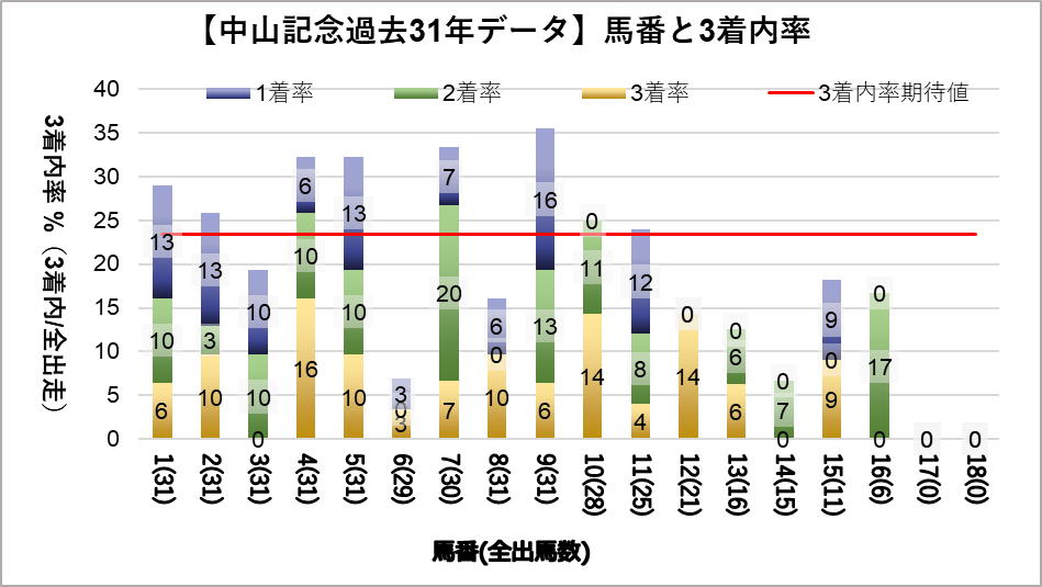 過去31レース分のデータを統計的に解析し、得られた傾向から有力馬と消し馬を選定しました。