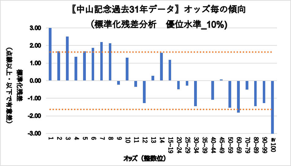 一方、60.0~69.9倍, 100倍以上は統計的に見ても有意に凡走傾向である。