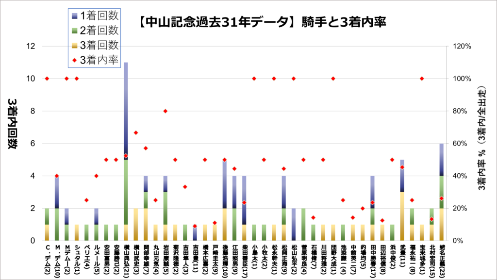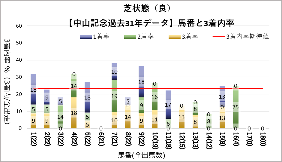 3着内率グラフは過去レース全体の傾向判断にご利用ください。
