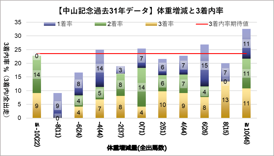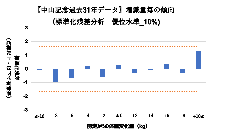 増量している方が好走する傾向がわずかに見られるが、統計的な有意差は認められなかった。