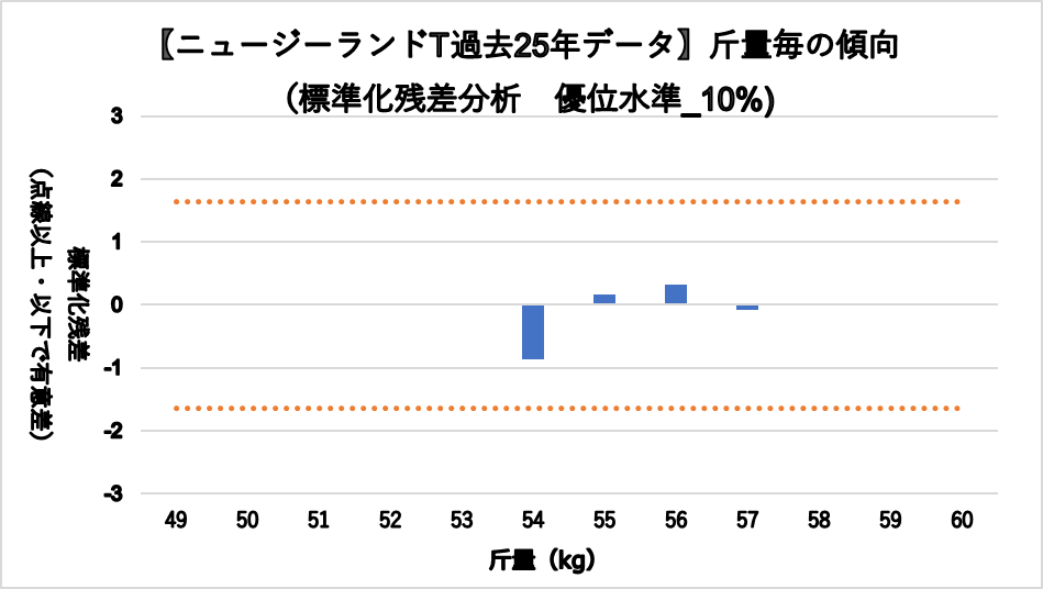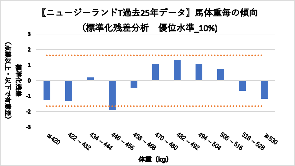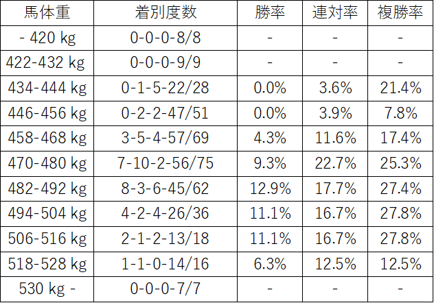446~456kgレンジは有意に凡走する傾向が見られた。