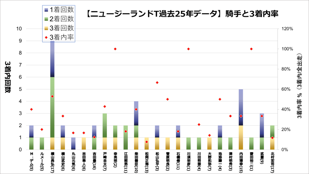 3着内率グラフは過去レース全体の傾向判断にご利用ください。