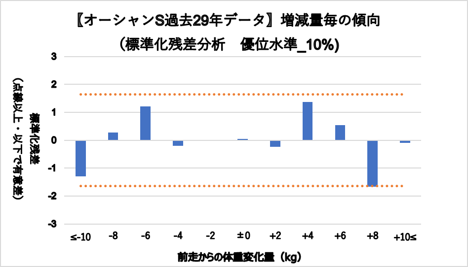 増減量+8kgについて有意に凡走する傾向が見られた。