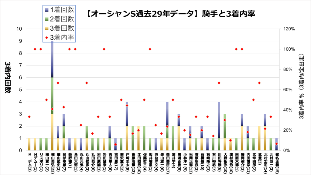 3着内率グラフは過去レース全体の傾向判断にご利用ください。