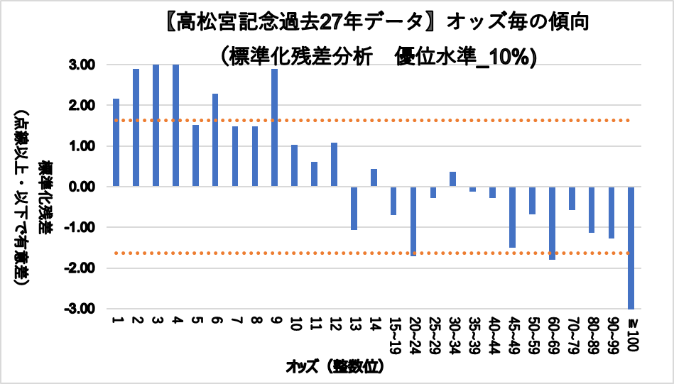 一方、20.0~24.9倍、60.0~69.9倍、100倍以上は統計的に見ても有意に凡走傾向である。