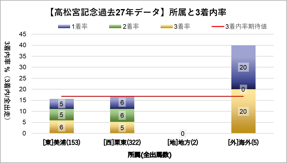 海外馬の好走が目立つものの、統計的な有意差は認められなかった。